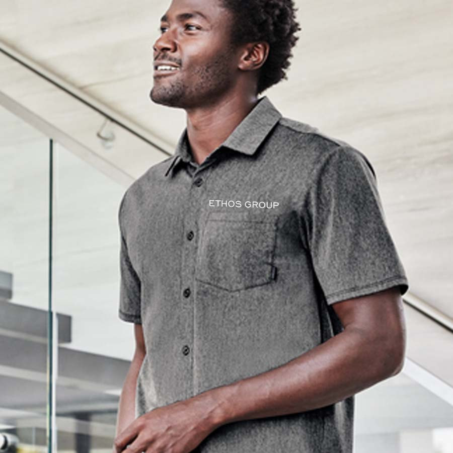 Extend your corporate casual wardrobe with these OGIO knit shirts that have mechanical stretch. The heathered fabric has a subtle pinstripe effect that’s evident in the inside collar, locker loop and at the side seam gussets.