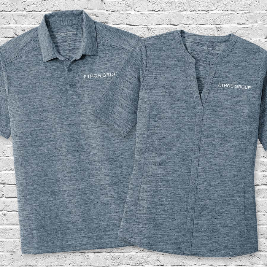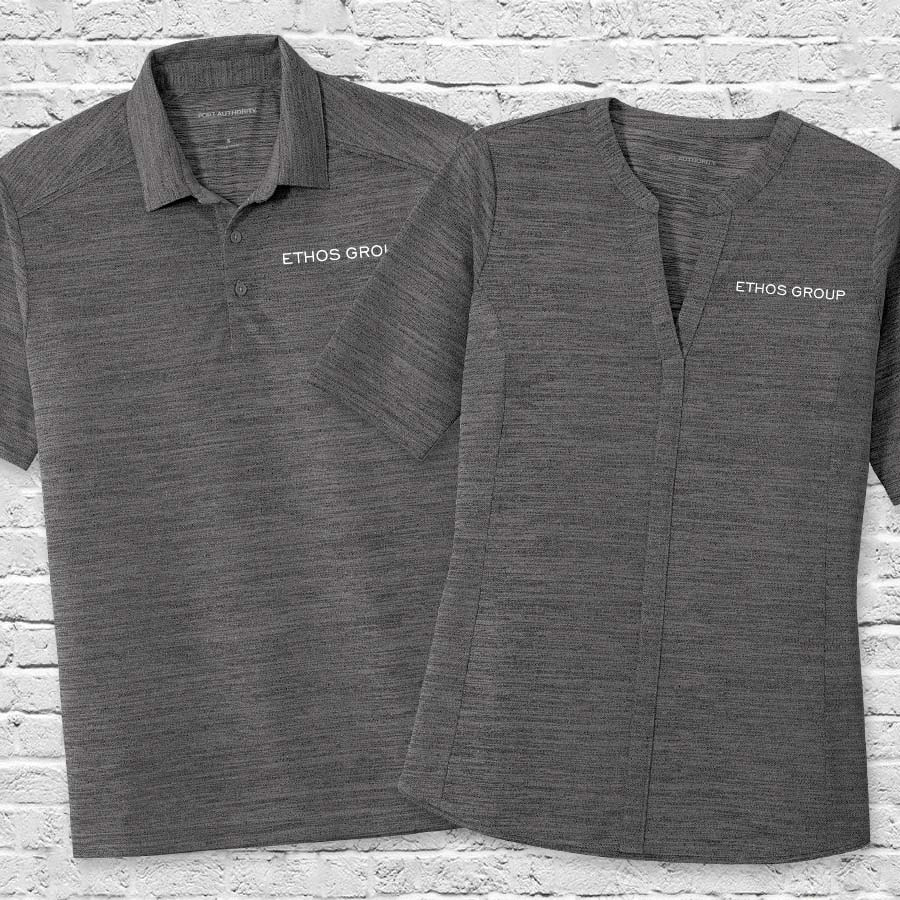 Embellished with the Ethos Group name on the front in white