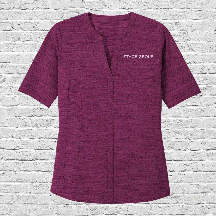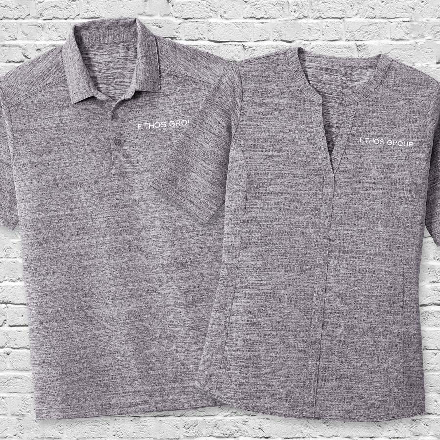 With an elevated heather look, these office-ready tops have plenty of stretch for unrestricted movement and are moisture wicking for added comfort & performance.